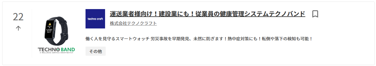 22位 運送業者様向け!建設業にも!従業員の健康管理システム『テクノバンド』